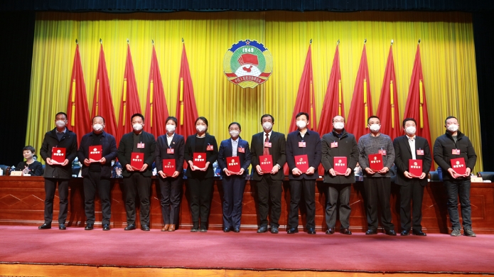 徐必友宣读《政协射阳县委员会关于表扬2022年度先进集体和个人的决定》