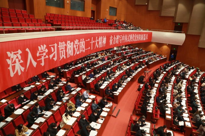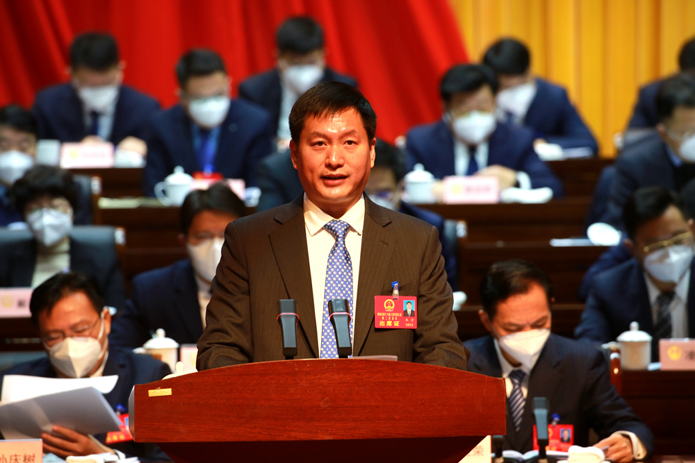 在热烈的掌声中,王宁作《政府工作报告》。报告分3个部分:2022年工作回顾、2023年工作任务、加强政府自身建设。