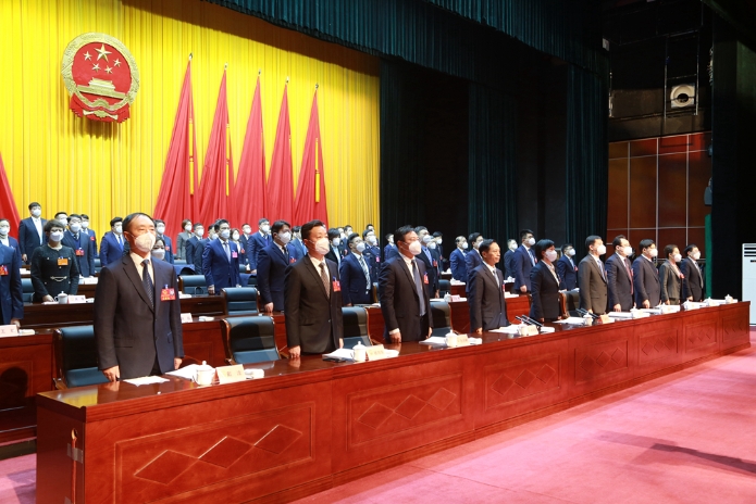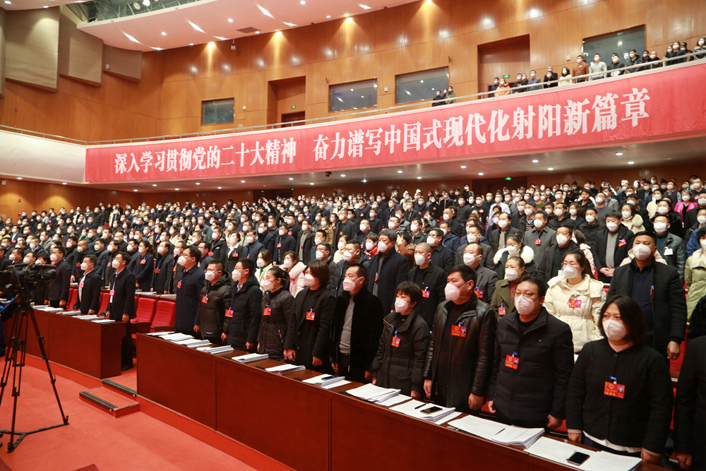 上午8时30分,崔晓荣宣布:射阳县第十六届人民代表大会第二次会议开幕。会场全体起立,奏唱《国歌》。