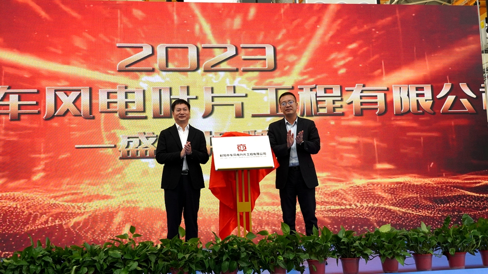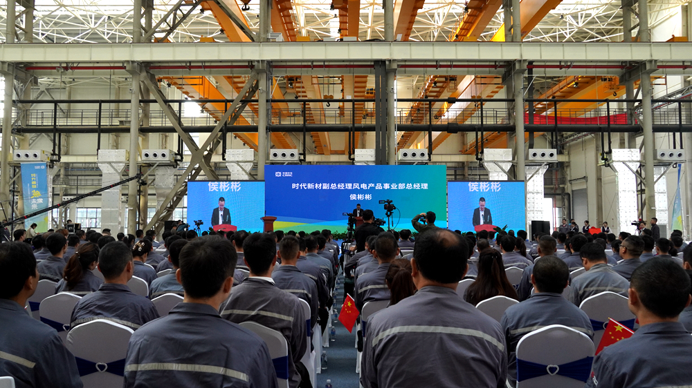 王宁在致辞中说,本次活动不仅是中车时代新材的一件大事,也是我县绿色低碳发展过程中的一件喜事。近年来,我县深入贯彻国家“双碳”战略,锚定“绿色低碳高质量发展先行区”目标,持续加快产业集群绿色化和产业链现代化步伐,先后落户远景能源、亨通海能等一批行业领军企业,获评中国践行绿色发展“新标杆”城市、中国绿色低碳发展典范县,浓墨书写了“向海图强”的绿色篇章。中车时代新材作为风电行业的领军企业,与我县绿色低碳发展战略高度契合。2019年春天,中车时代新材风电叶片一期项目正式落户,实现当年开工、当年竣工、当年投产。今年,二期项目“九证联发”创下全省先例,从打桩到建成前后仅用不到6个月时间,刷新了我县重大项目服务的“射阳速度”。今天,项目正式建成投产,标志着我县风电产业链补强和产业生态完善又迈出了坚实的一步,为我们建设江苏省首个低(零)碳产业园区按下了“快进键”。下一阶段,我县将进一步深化政企合作,以最大诚意、最好政策、最优服务,为项目建设与企业发展保驾护航,全力推动玻纤光伏支架、碳纤拉挤板等项目尽快取得更大突破,共同建设好百亿级中车新能源装备产业园区。