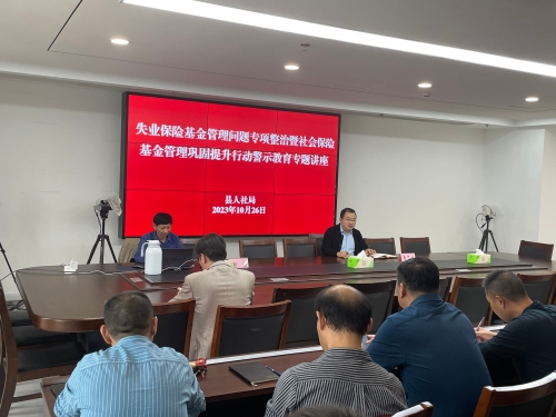 为进一步提高社会保险基金风险防范意识,不断提升基层社保工作人员法纪意识、责任意识,10月26日,县人社局举办失业保险基金管理问题专项整治及社保基金巩固提升行动警示教育专题讲座,特邀省社保基金监管专家、市机保中心书记倪亚主讲,县人社局副局长马志成主持讲座。