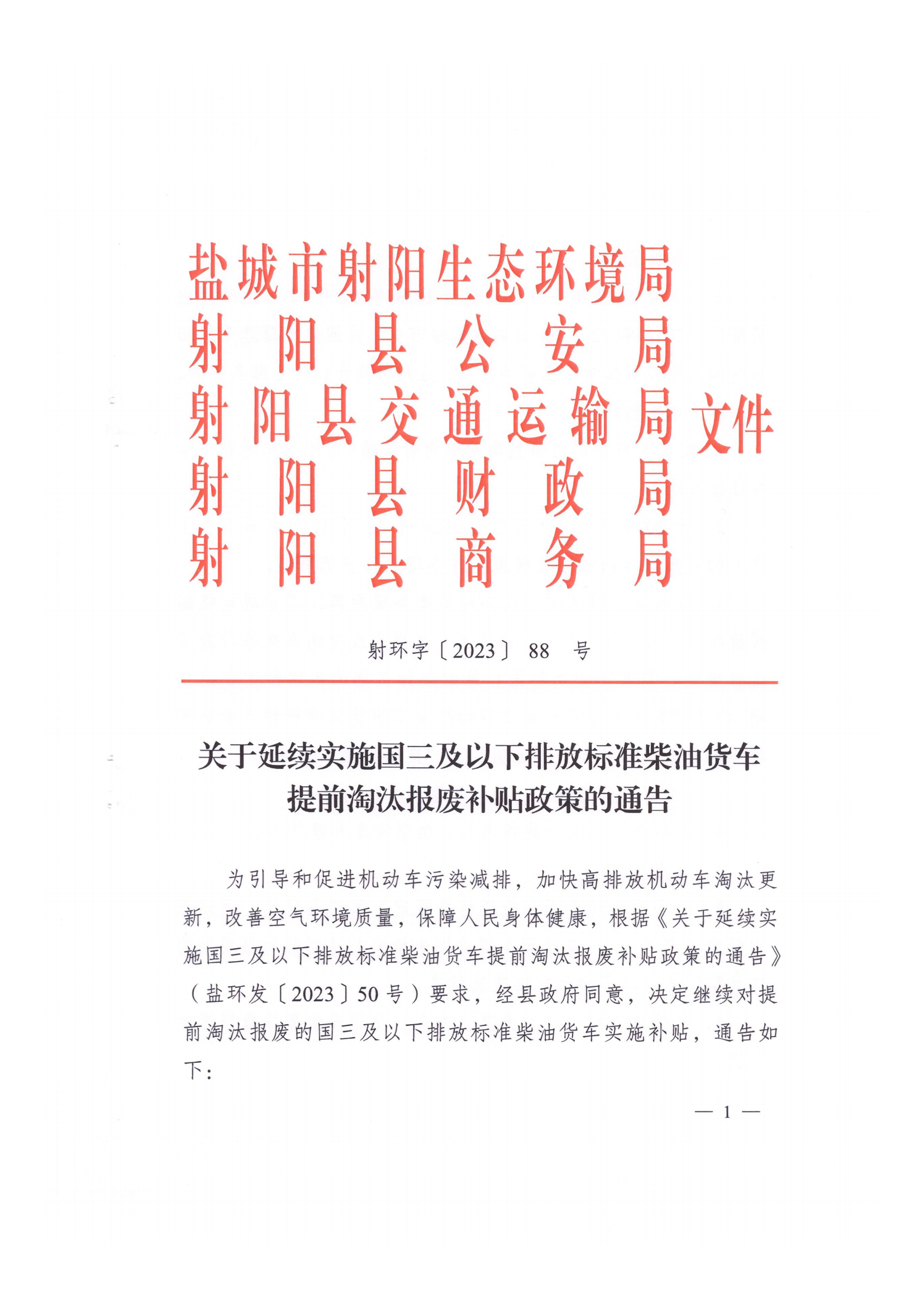 关于延续实施国三及以下排放标准柴油货车提前淘汰报废补贴政策的通告(附件).docx