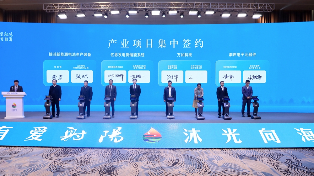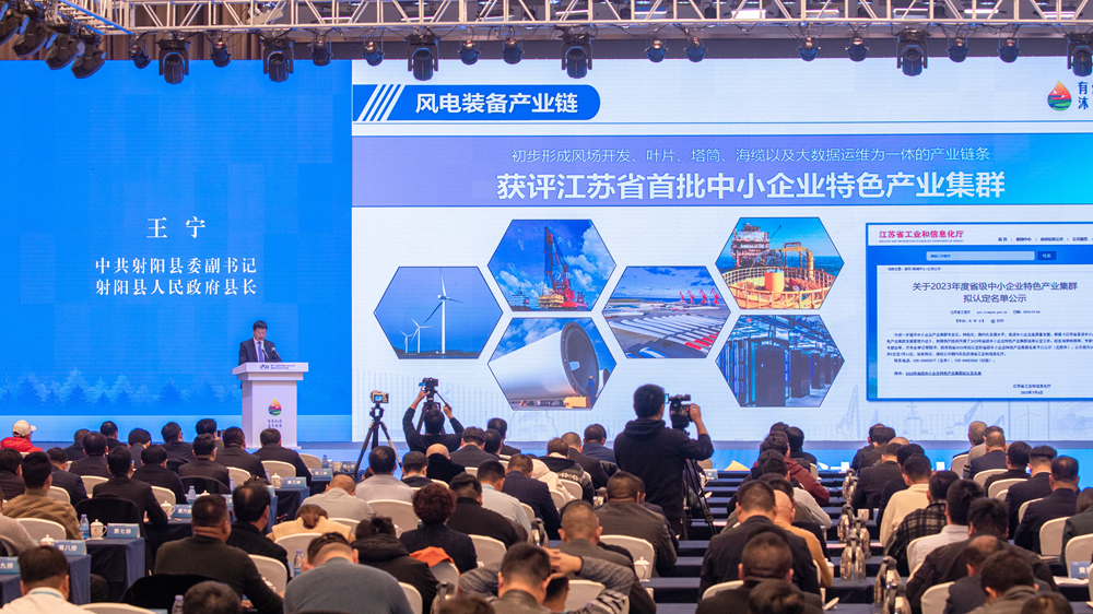 吴冈玉代表县委、县政府向各位嘉宾表示热烈欢迎。她说,射阳源于八百多年前黄河夺淮入海、泥沙淤积成陆,数百年来,一代代射阳人东向出海不懈探索,“有爱射阳·沐光向海”既是鹤乡大地的精神特质,也是射阳人民的不懈追求。“聚光”成芒,拾级而上,射阳正成为中国沿海加速崛起的闪亮新星。射阳始终秉持海纳百川的理念,抢抓多重国家战略叠加机遇,推动一批好项目大项目相继落户,助推经济社会稳健向好,连续多年入选“全国县域经济百强县”“综合竞争力百强县”“投资竞争力百强县”。“风光”无限,绿能澎湃,射阳正成为优秀企业落子布局的首选之地。在射阳,河海联动、海铁联运的物流大通道逐步形成,新能源、动力电池、高端纺织以及光电显示等一批百亿级绿色产业集群加速崛起,长三角首个全绿电低(零)碳示范园区建设正酣,各类产业协作平台高效运行,充沛的“阳光雨露”使企业茁壮成长。“沐光”向海,逐梦未来,射阳正成为各方人士安居乐业的理想之城。近年来,射阳统筹老城更新和新城发展,持续加强医疗、教育、生态环境建设,致力打造近悦远来的生活福地、创业高地。盛情邀约大家成为品质射阳的“合伙人”,射阳将不断提升“全国人民满意的公务员集体”服务内涵,和各路精英共拓产业蓝海、共赴星辰大海。