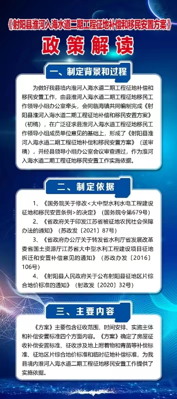 【图片解读】射阳县淮河入海水道二期工程征地补偿和移民安置方案的政策图解