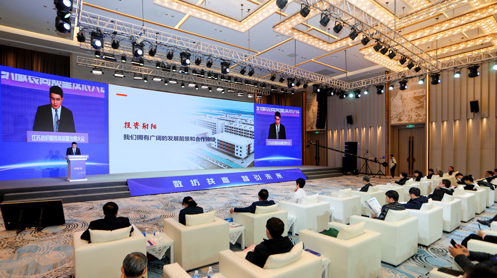 3月17日,由江苏省服装协会与射阳县人民政府联合主办的江苏纺织服装高质量发展大会在我县成功举办。来自全国纺织服装产业的知名专家学者及企业代表齐聚鹤乡,交流成果、激荡思想,共享商机、共话发展。中国纺织工业联合会秘书长夏令敏、中国纺织工业联合会信息化部副主任殷强、江苏省工信厅消费品处处长高彬、江苏省纺织协会名誉会长谢明、江苏省服装协会会长龚慧娟、副市长唐敬、县委书记吴冈玉、县政协主席邱德兵等出席。夏令敏、唐敬、吴冈玉分别致辞。江苏省服装协会副会长张娴主持。