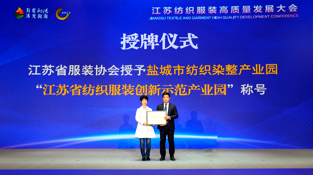 现场还授予盐城市纺织染整产业园“江苏省纺织服装创新示范产业园”称号;对江苏服装优势企业、2022江苏省服装行业五十强企业进行表彰。