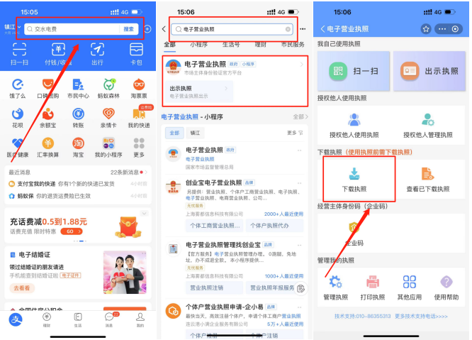 在支付宝中搜索“电子营业执照”支付宝小程序。安装步骤: