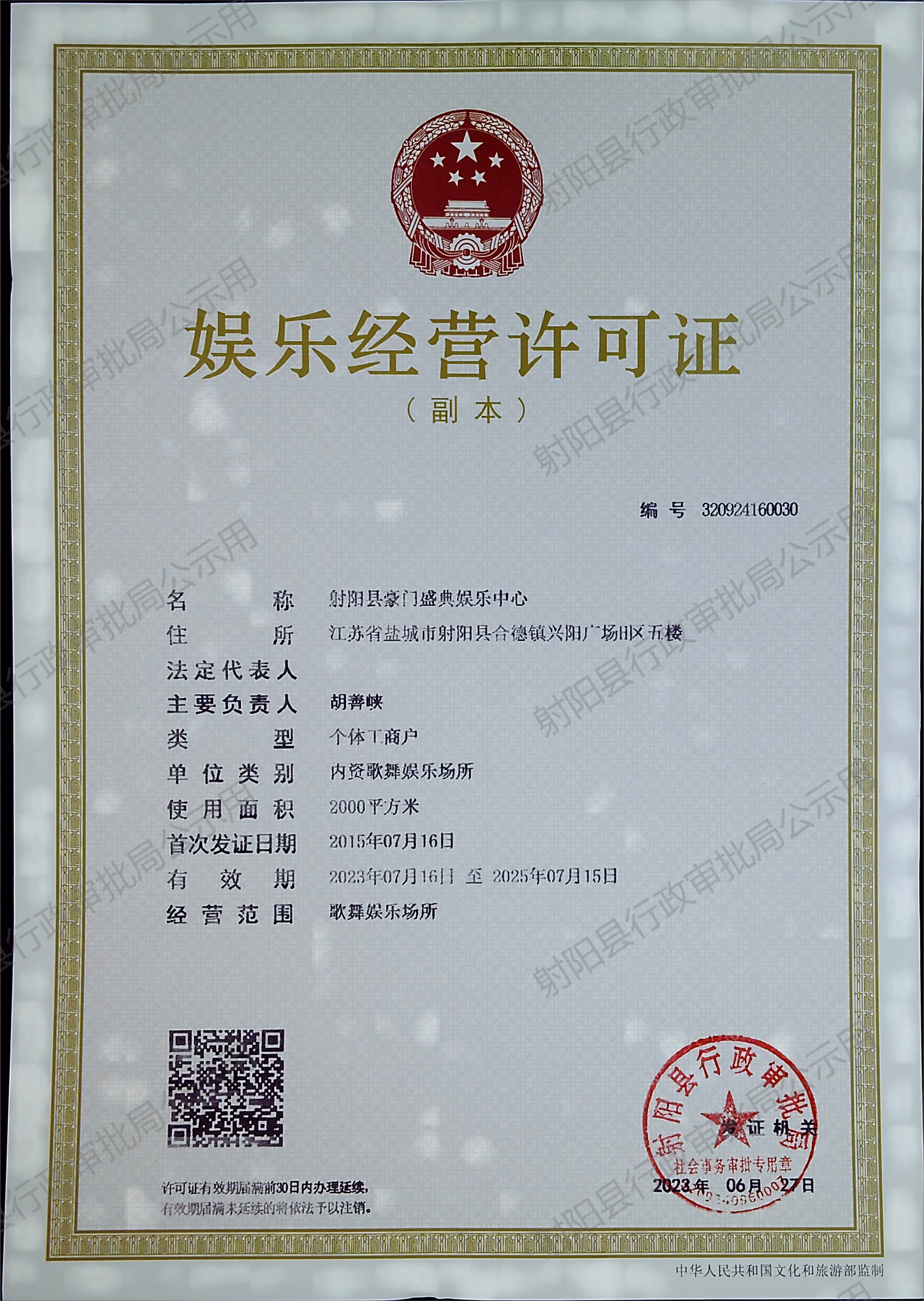 娱乐经营许可证 (延续)