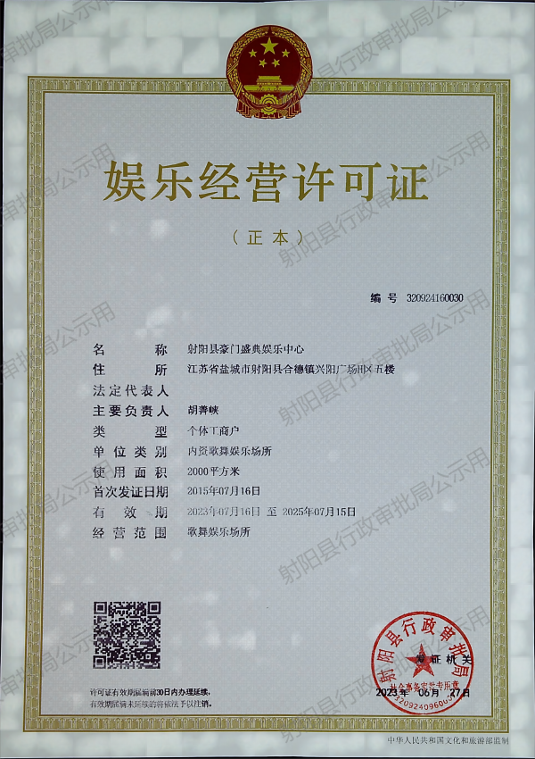 娱乐经营许可证公示
