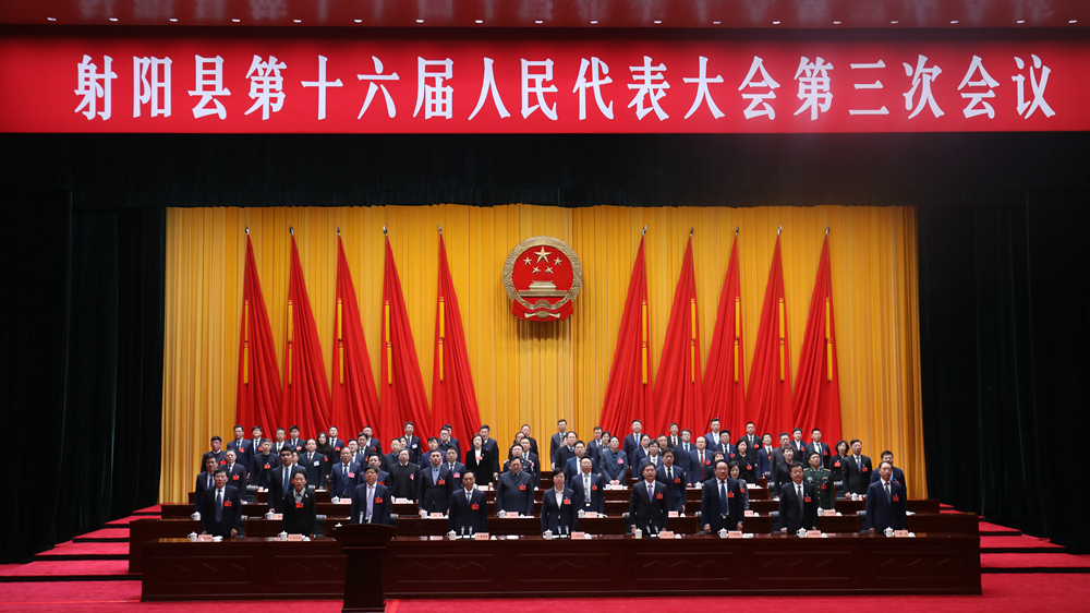 上午8时30分,崔晓荣宣布:射阳县第十六届人民代表大会第三次会议开幕。会场全体起立,奏唱中华人民共和国国歌。