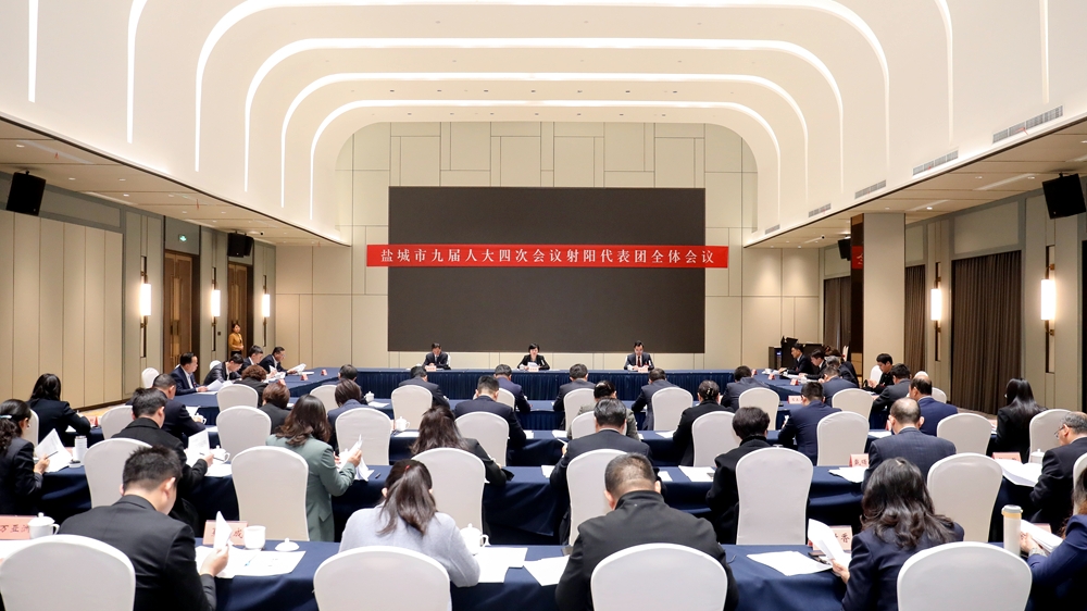1月18日上午,市九届人大四次会议射阳代表团举行全体会议。县委书记吴冈玉主持并讲话,县人大常委会主任崔晓荣参加会议。