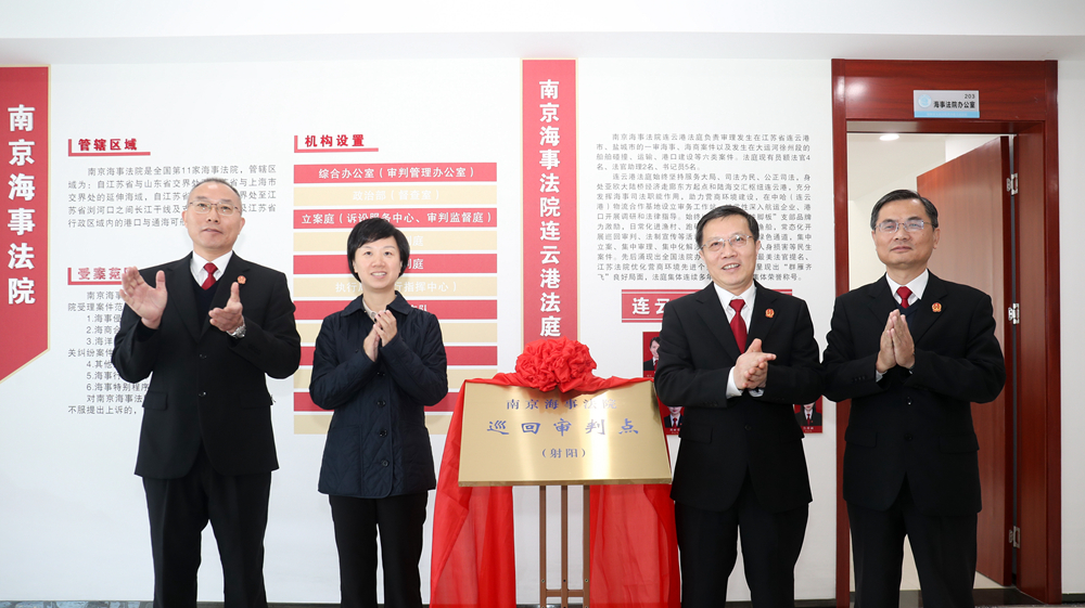 11月28日上午,“南京海事法院巡回审判点(射阳)”启用仪式在射阳法院黄沙港人民法庭举行。南京海事法院党组书记、院长花玉军,市中院党组书记、院长李江蓉出席。县委书记吴冈玉致辞。南京海事法院党组成员、副院长王蕴主持仪式。