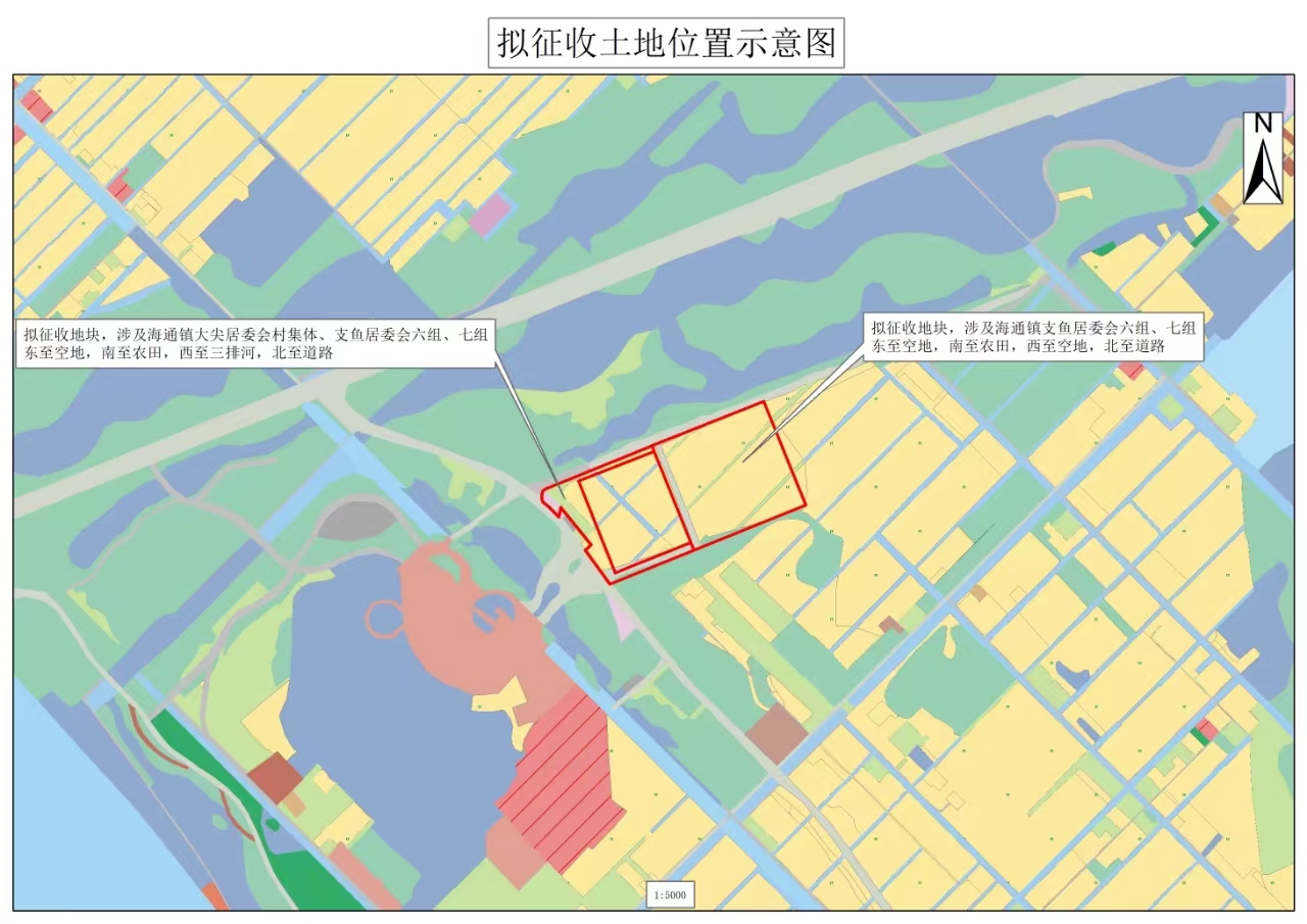 本次拟征收土地位于射阳县海通镇大尖居委会、支鱼居委会。拟征收土地位置详见附图。
