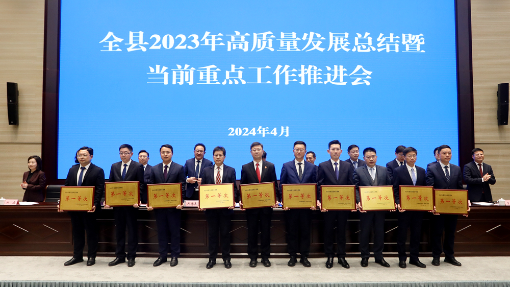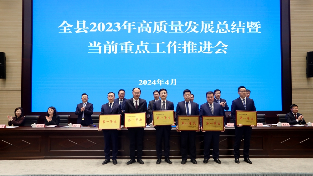 4月15日下午,县委、县政府召开全县2023年度高质量发展总结暨当前重点工作推进会。县委副书记、县长王宁出席会议并讲话。他强调,要深入学习贯彻习近平总书记对江苏工作、在盐城考察时的重要讲话重要指示精神,认真落实党中央和省市委决策部署,发挥综合考核“指挥棒”作用,树牢注重实绩、崇尚实干的鲜明导向,鼓足干劲抓当前,勇挑大梁比发展,奋力夺取“半年红”,赢得全年“满堂彩”。县人大常委会主任崔晓荣、县政协主席邱德兵等县四套班子领导参加会议。县委副书记张志东主持会议。