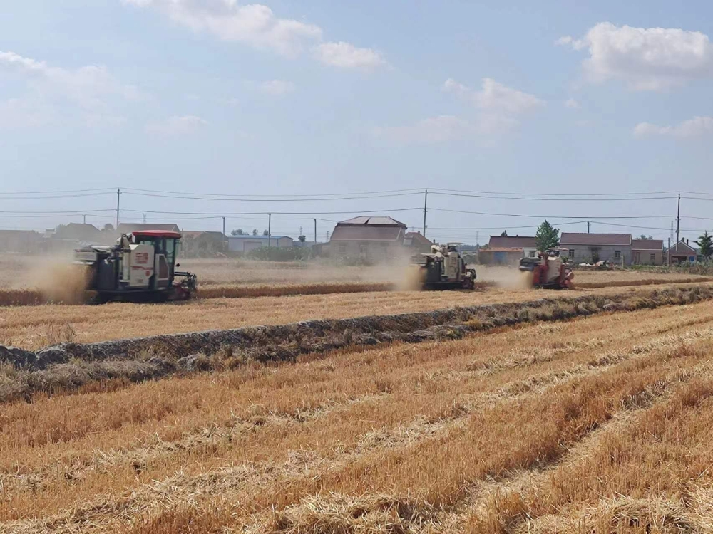 6月14日下午,在长荡镇港南居的夏收现场,县供销社农禾现代农业服务公司农机服务队数十台收割机、运粮车马达轰鸣,正忙着收割运载收获的小麦。“港南村今年种植的小麦长势良好,县供销社对农户开展全托管服务,应当充分肯定地说,供销社功不可没。”县长荡镇港南社区党总支书记王留宜深有感触地说。