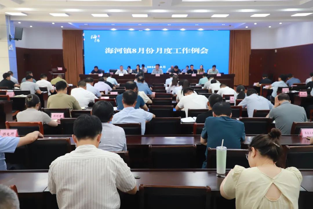 8月3日上午,海河镇在行政服务中心二楼西会议室召开8月份月度工作例会,传达贯彻落实县委十六届五次全会精神,总结7月份工作完成情况,部署8月份工作任务,动员全镇上下攻坚冲刺三季度,决战决胜下半年
