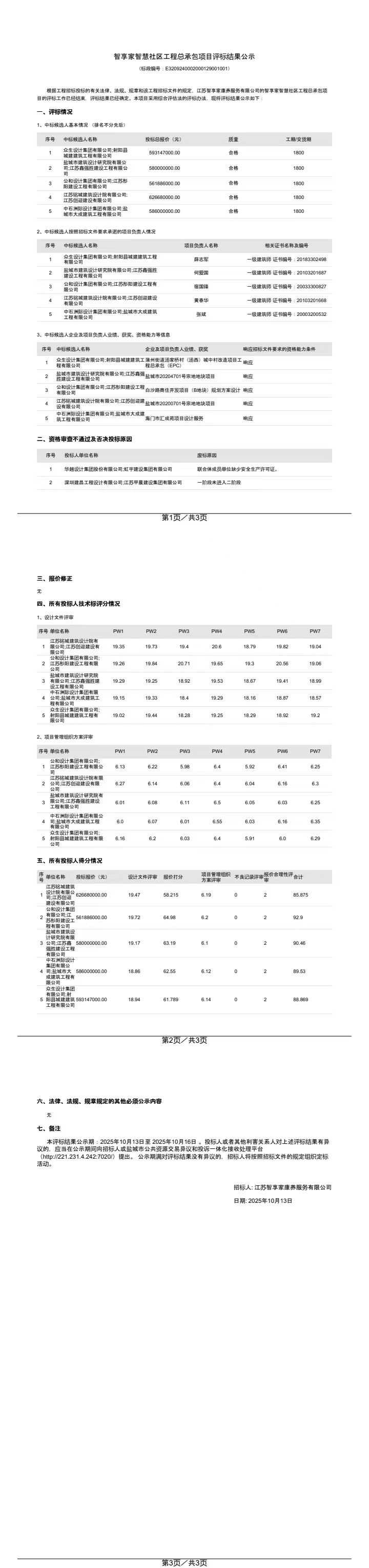 智享家智慧社区工程总承包项目评标结果公示