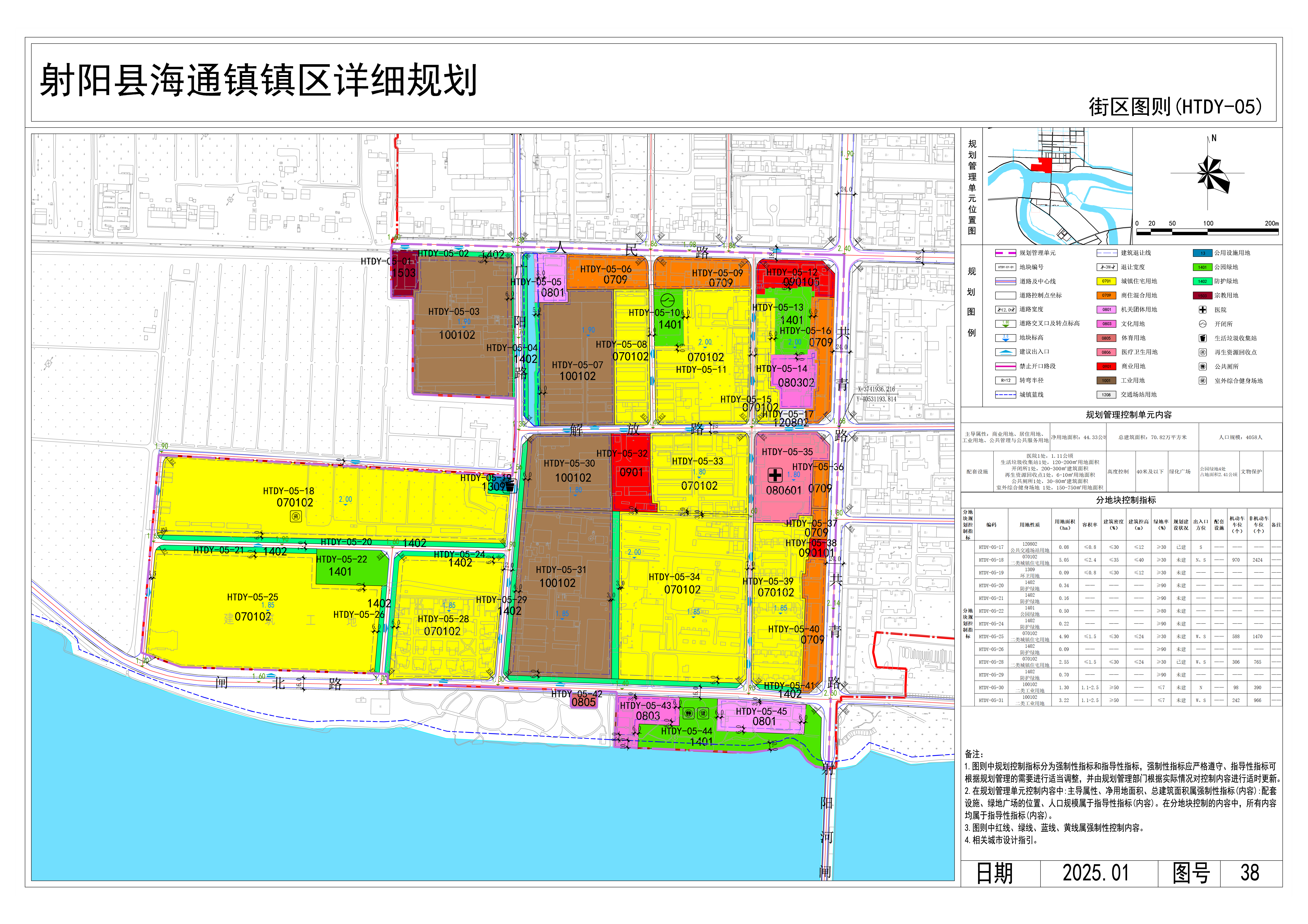 调整内容:在中心镇区发展定位、规划规模、空间结构不变的前提下,对《射阳县海通镇中心镇区单元详细规划》HTDY-04、HTDY-05、HTDY-09街区图则内用地进行局部修改,主要为用地性质调整。将HTDY-04街区图则内HTDY-04-46、HTDY-04-47地块用地性质由商业用地调整为商住混合用地。将HTDY-05街区图则内HTDY-05-23地块分别合并至HTDY-05-24、HTDY-05-28地块,并将HTDY-05-27地块合并至HTDY-05-24地块;HTDY-05-30、HTDY-05-31地块用地性质由商住混合用地调整为二类工业用地。将HTDY-09街区图则内HTDY-09-08、HTDY-09-11地块合并为HTDY-09-08地块,并优化地块范围,优化HTDY-09-07、HTDY-09-09、HTDY-09-24、HTDY-09-25地块范围,优化纬一路道路长度。保障城镇开发边界外公共服务、市政基础设施建设,新增HTDK-01、HTDK-02两处地块图则。