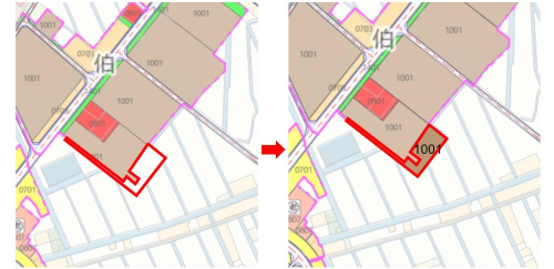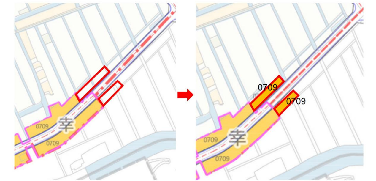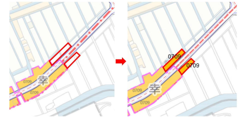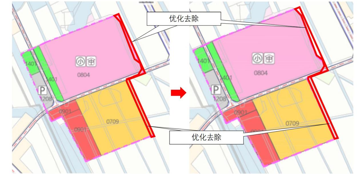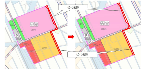 根据射阳县城镇开发边界调整成果,本次规划范围将涉及调整的商住用地纳入详细规划范围内,面积分别为0.21公顷(幸福路北)、0.13公顷(幸福路南),用地代码均为0709。