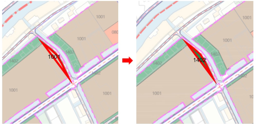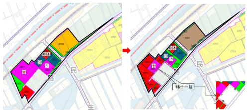 图2 更新前土地使用规划图(左) 更新后土地使用规划图(后)