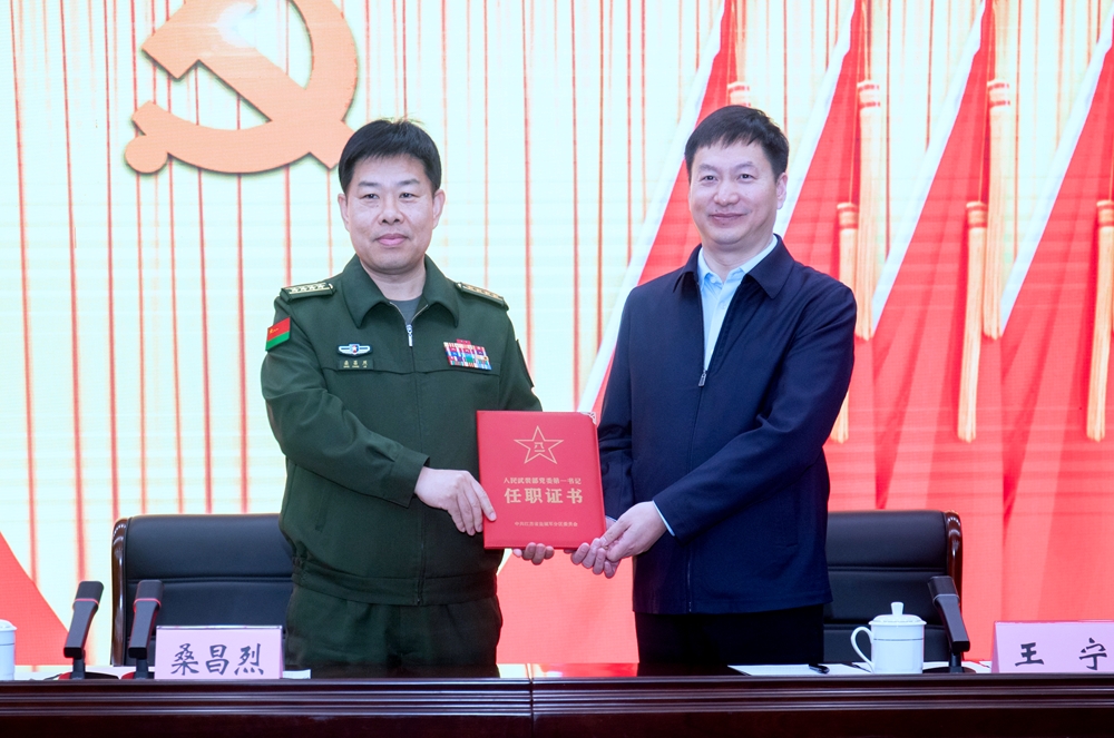 会上,桑昌烈宣读了盐城军分区党委关于王宁担任射阳县人武部党委委员、第一书记的决定,并颁发任职通知书。