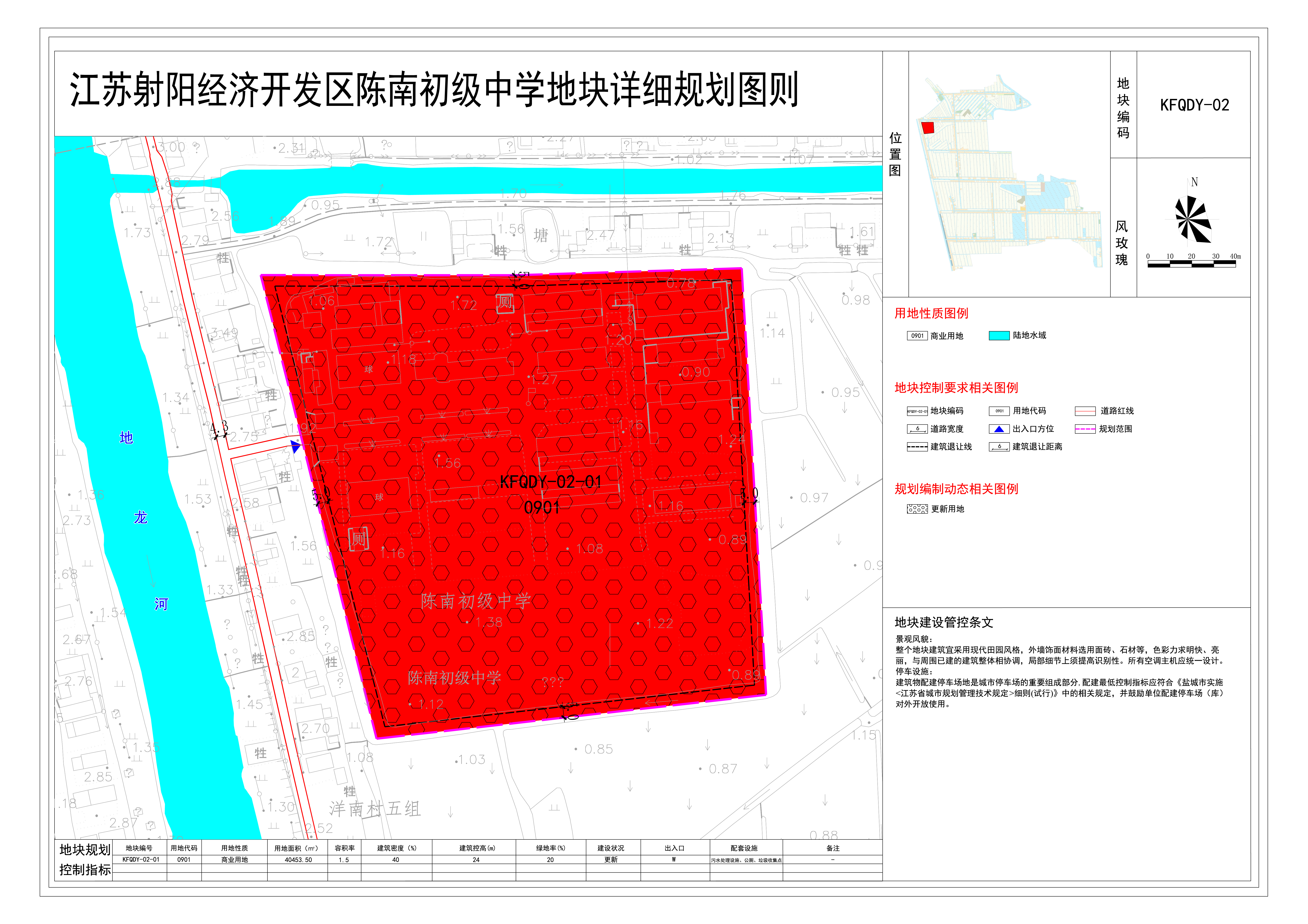 为响应省厅《关于进一步强化自然资源要素保障持续推动全省经济回升向好的通知》政策要求,进一步盘活闲置存量国有资产,特开展了《江苏射阳经济开发区陈南初级中学地块详细规划图则》。
