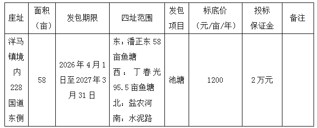 射阳县振洋水产养殖服务有限公司资源发包项目,经公司研究决定,现实行公开发包,择优确定该项目承包人。