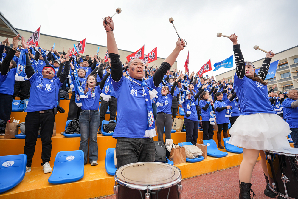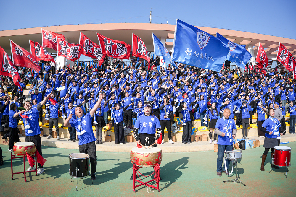 开门红的喜悦尚未散去,射阳队便马不停蹄奔赴客场,于3月15日下午挑战盐城经开区队,1993名球迷到场观赛,其中200多名由射阳鹤舞球迷会组织的远征球迷,提前1小时便唱响助威口号,成为绿茵场边亮眼的“蓝色风景线”。
