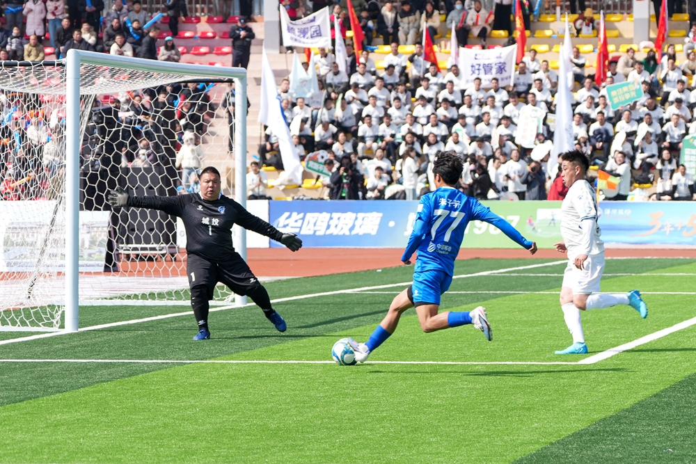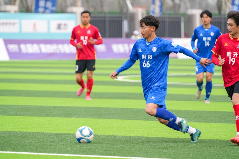 开赛不到5分钟,66号单伟便率先破门,为球队取得梦幻开局;10分48秒,单伟“梅开二度”,将比分优势扩大,点燃全场热情;26分20秒,47号郑浩带球突入禁区,一脚劲射稳稳命中,上半场射阳队便以大比分领先,让赛场氛围持续升温。下半场易边再战,替换上场的77号朱子轩化身赛场“旋风”,在59分钟和63分钟连入两球;77分20秒,13号桑亿在精妙传控下完成破门。最终,射阳队以6:0的悬殊比分完胜盐城城投队,拿下联赛开门红。