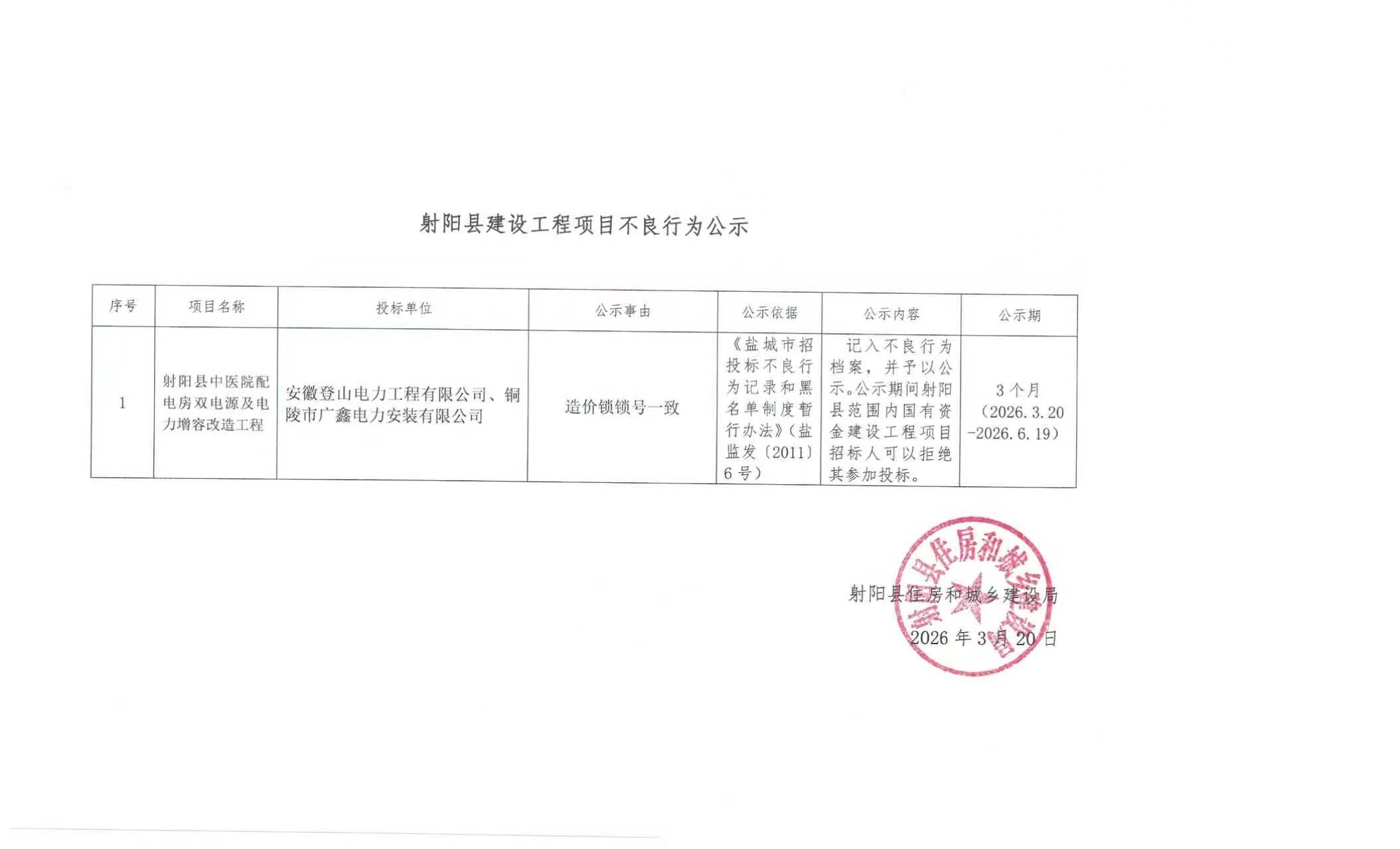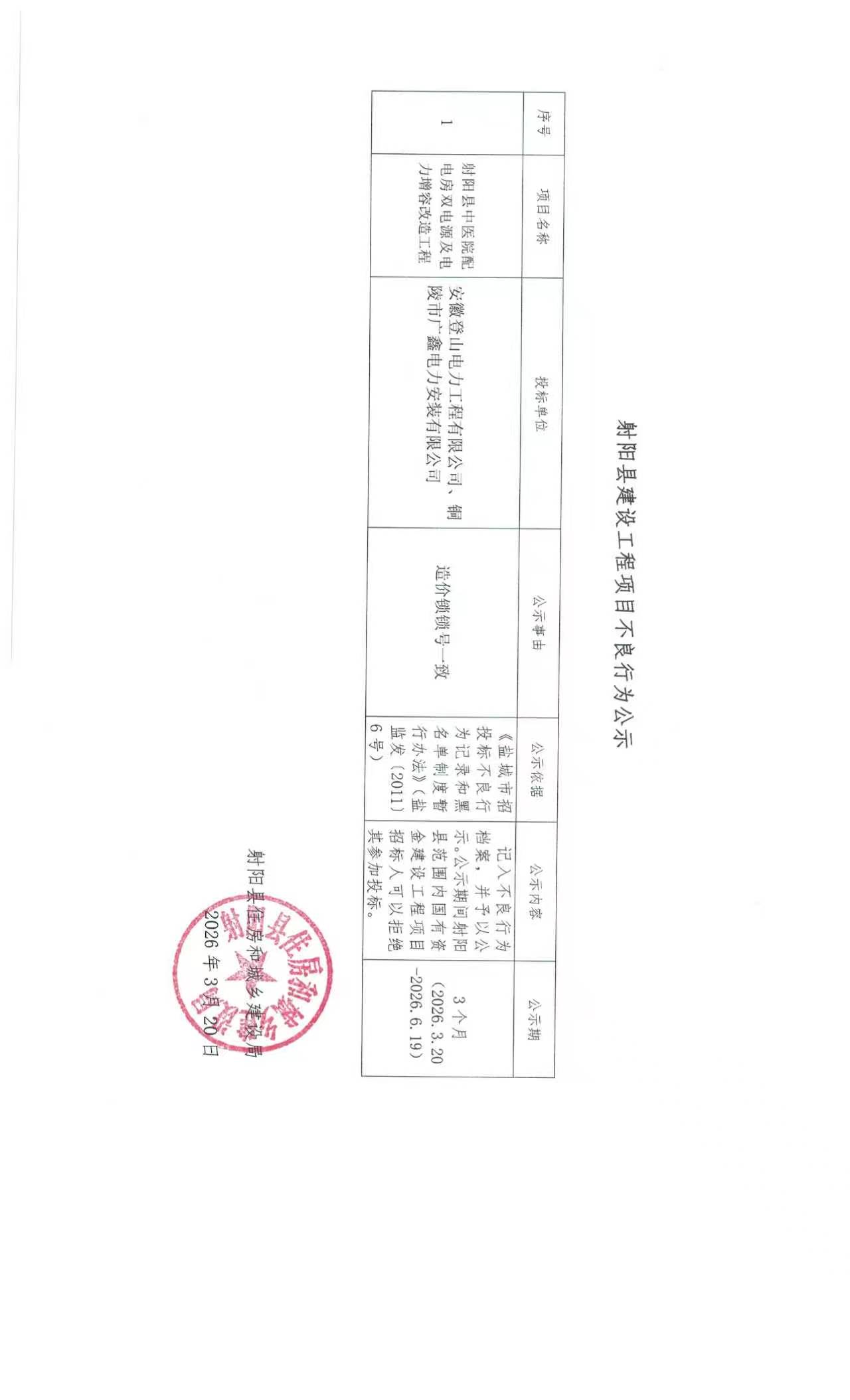 安徽登山电力工程有限公司、铜陵市广鑫电力安装有限公司不良行为公示