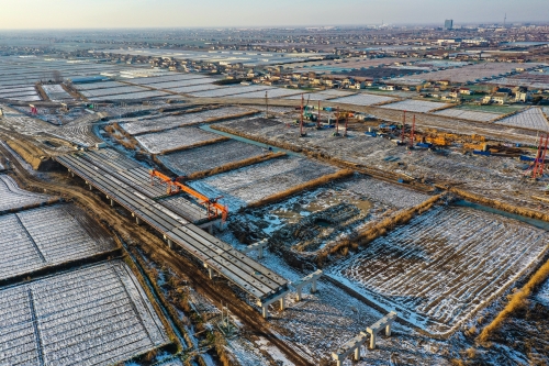 盐城至射阳高速公路项目解决了多项重大制约,仅用8个月时间就全面完成了前期工作,创造了省内高速公路建设三个“第一”。截止2021年2月底,已完成实物工程量58841万元,占计划完成总工程量65313万元的90%。2021年计划产值45068万元,目前正在全面加快推进路基等超载预压和桥面梁板架设及桥面系施工。计划2021年底前完成桥梁工程,路面两层水稳底基层施工,确保2022年建成通车。