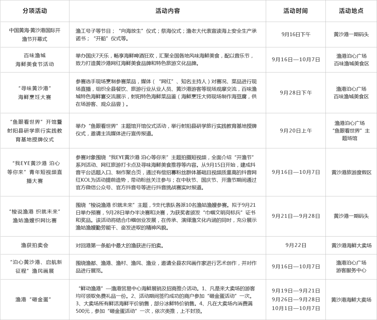 正是初秋风顺,丹桂飘香,宜捞鳞甲珍鲜,桅杆千百挂旗幡,随鼓踏浪,一网笑开颜……为让更多人可以沉浸式感受一年一度开渔祭海盛宴的热闹景象,充分整合利用“黄海国际开渔节”优质IP品牌活动,把大海讲给你听,感受北纬33°最美海岸线,大力推广黄沙港旅游文化资源,助推黄沙港产业升级,展示射阳“环海湿地 有爱小城”魅力形象,奋力推动“强富美高”现代化新射阳建设好开局。
