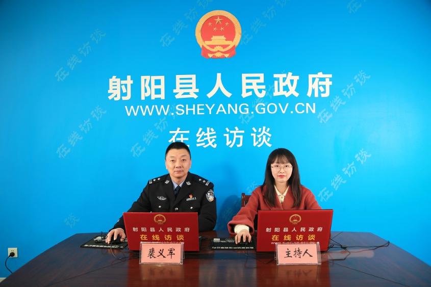 各位网友,上午好!欢迎参加我们的在线访谈活动。今天我们邀请了射阳县公安局党委委员、副局长裴义军参加我们的在线访谈活动,下面请裴局长跟网友们打个招呼。